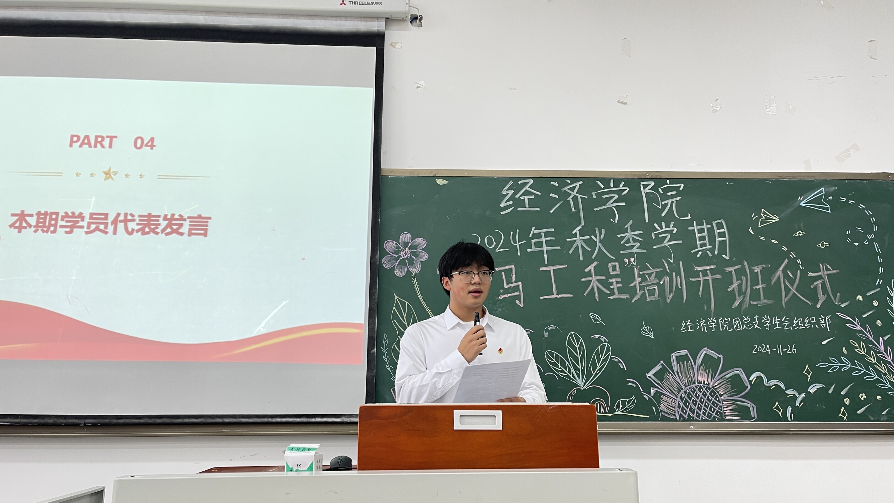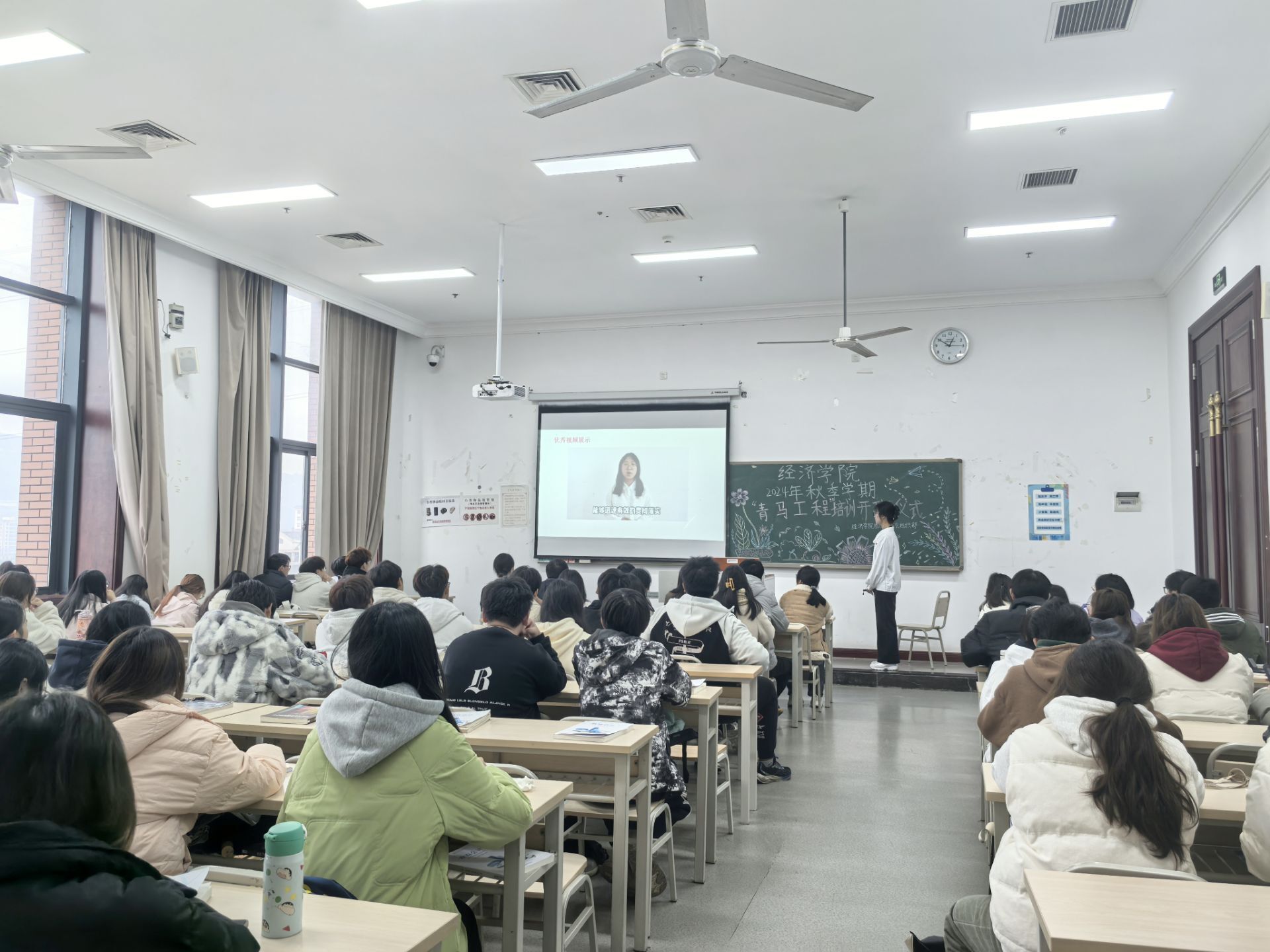 随后,我们观看了上期“青马学员说”系列中的优秀视频,这些视频以独特的视角和深刻的思考,展现了青马学员们的心路历程与成长感悟。每一位学员都精心制作了视频,通过镜头分享了自己对国情社情的独到见解和深刻体会。在视频的展播过程中,一个个生动鲜活的青马学员形象跃然于屏幕之上,让我们深刻感悟到,新时代新征程,应坚定不移推进马克思主义中国化,谱写马克思主义中国化时代化新篇章。