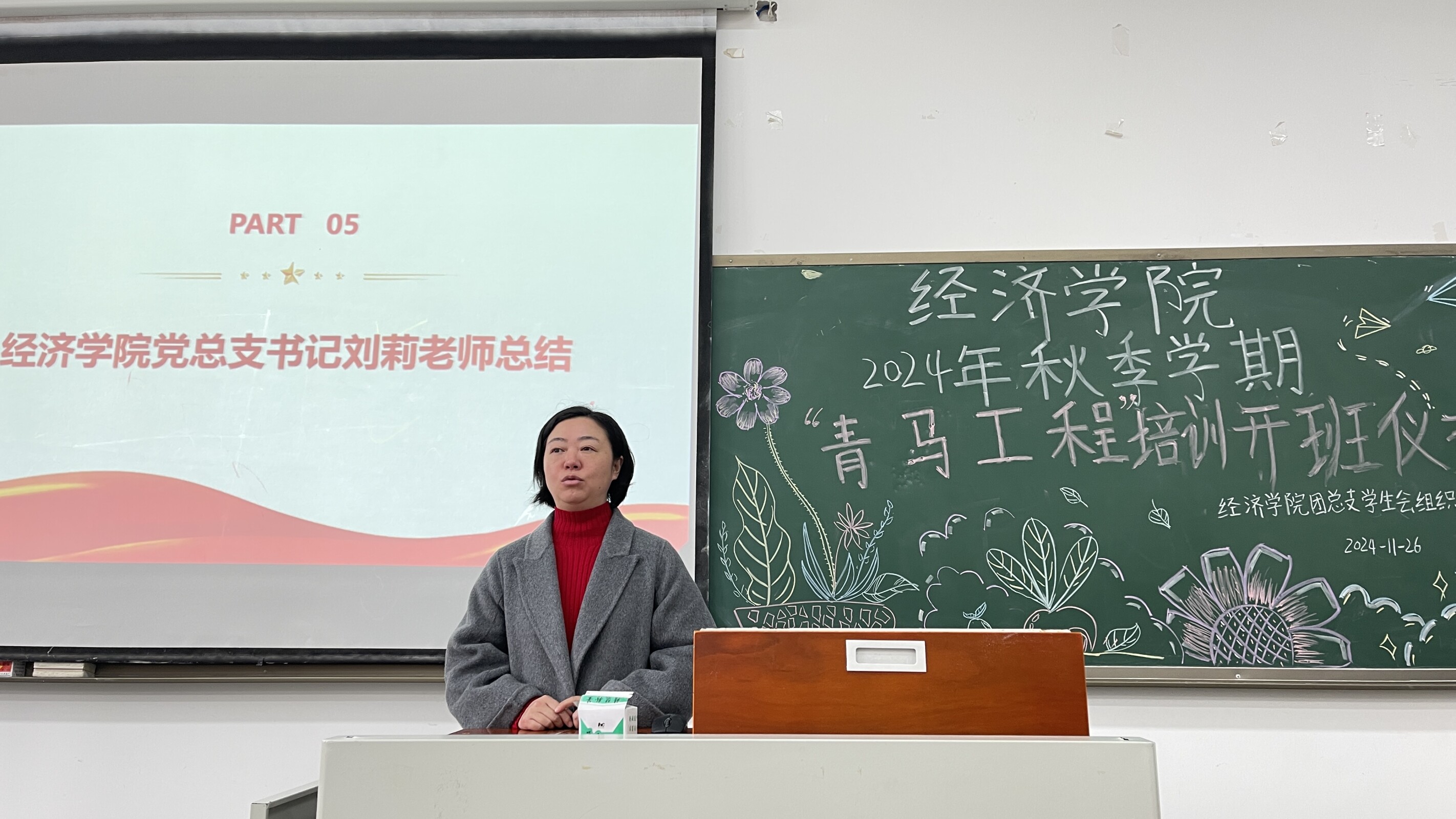 开班仪式在激昂的共青团团歌中拉开帷幕,团总支书记蔡婷解读了“青马工程”策划案,概述了其背景和含义,详细介绍了青马工程的课程安排,涵盖了思想教育、榜样引领、志愿服务以及责任担当等多个核心板块。同时,她还着重强调了“青马工程”的纪律要求与评优标准,激励大家积极进取,奋勇争先,努力成为优秀学习小组和优秀学员。最后,蔡婷书记还提出一点希望,希望大家不要将视野局限于这次短期的培训,而是要将“青马工程”所蕴含的精神内核,融入到日常的学习、生活、工作与实践中去,持续求知,追求理想,锤炼本领,实现人生价值。